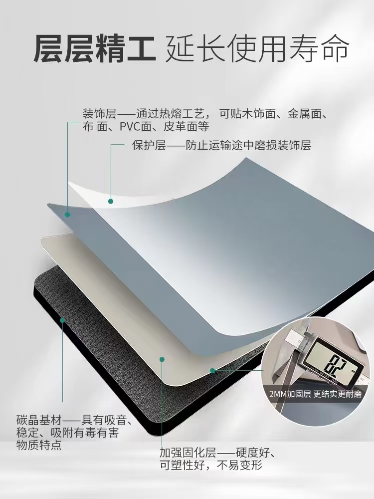 硅酸鈣墻面板是以硅質(zhì)、鈣質(zhì)材料為主原料,經(jīng)制漿、成型、在高溫高壓飽和蒸汽中加速固化反應(yīng),形成的一種新型綠色環(huán)保建材。屬于不燃A1級材料,適用在一些大型商場、酒店等人員密集場所。在衛(wèi)生間、浴室等高濕度環(huán)境下,依然能維持性能穩(wěn)定,不會出現(xiàn)膨脹、變形等問題,確保墻面長期保持美觀與功能完好。6mm厚的板材強度遠(yuǎn)超9.5mm厚的普通紙面石膏板,墻體結(jié)構(gòu)堅實可靠,不易受損破裂,可承受一定的撞擊和壓力,適合各類建筑結(jié)構(gòu)。出色的隔音性能有效阻隔外界噪音,營造安靜舒適的室內(nèi)空間,如用于會議室、影院等對隔音要求高的場所。憑借其出色的性能,正廣泛應(yīng)用于各類建筑項目中。
